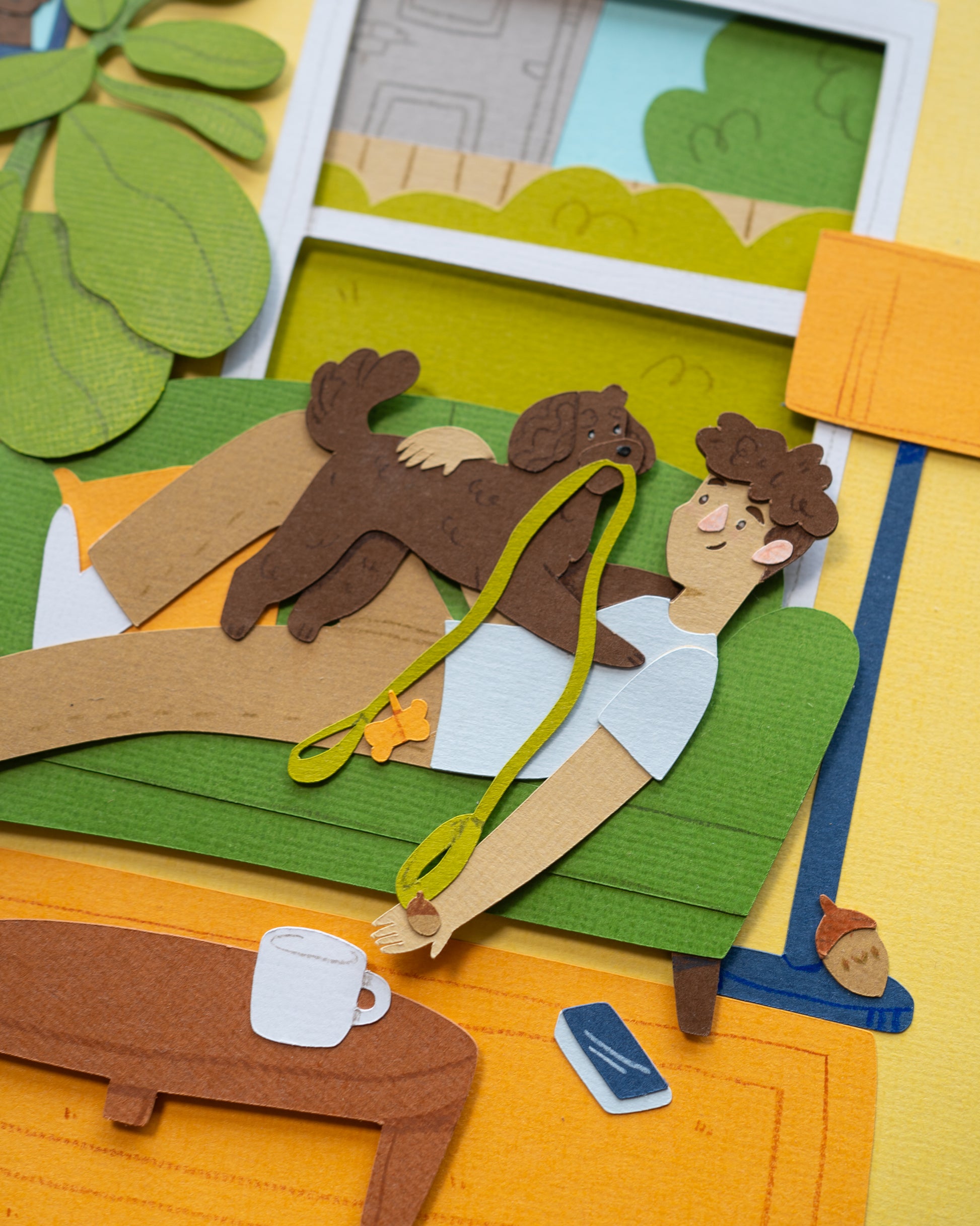 Peachtober day 1: Acorn 🐿️ “Oof, Acorn! I get it, I get it, it’s time for our walk!” Sam has been laying around on the couch staring at his little screen for waaay too long today, it’s a nice sunny day, and its time to go outside to let acorn explore!