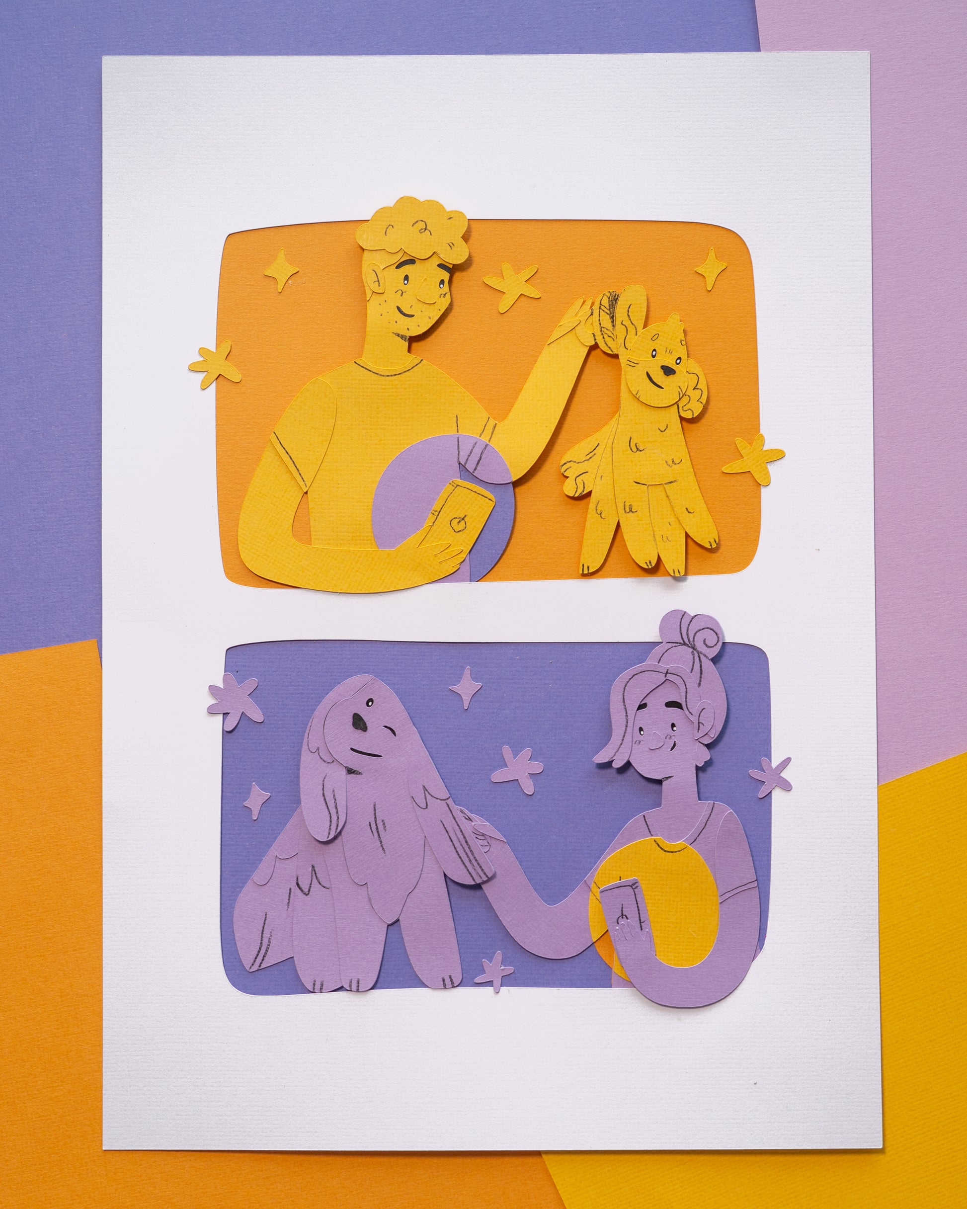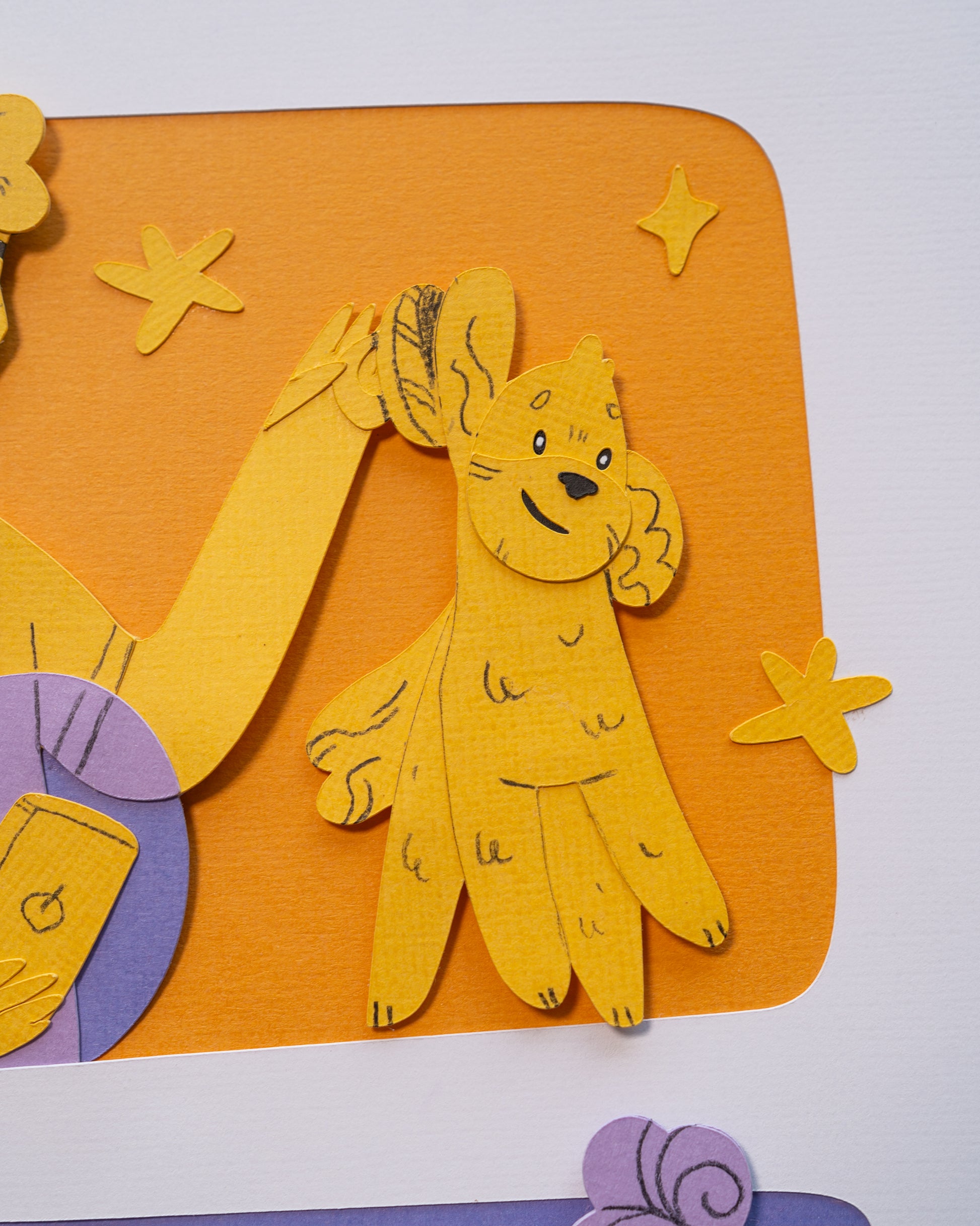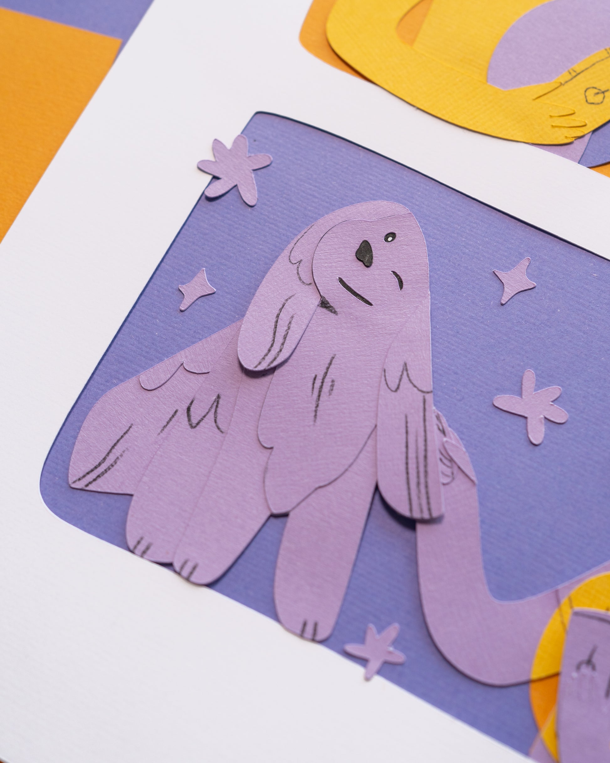 Made with archival 216gsm cardstock, gouache, and coloured pencils.