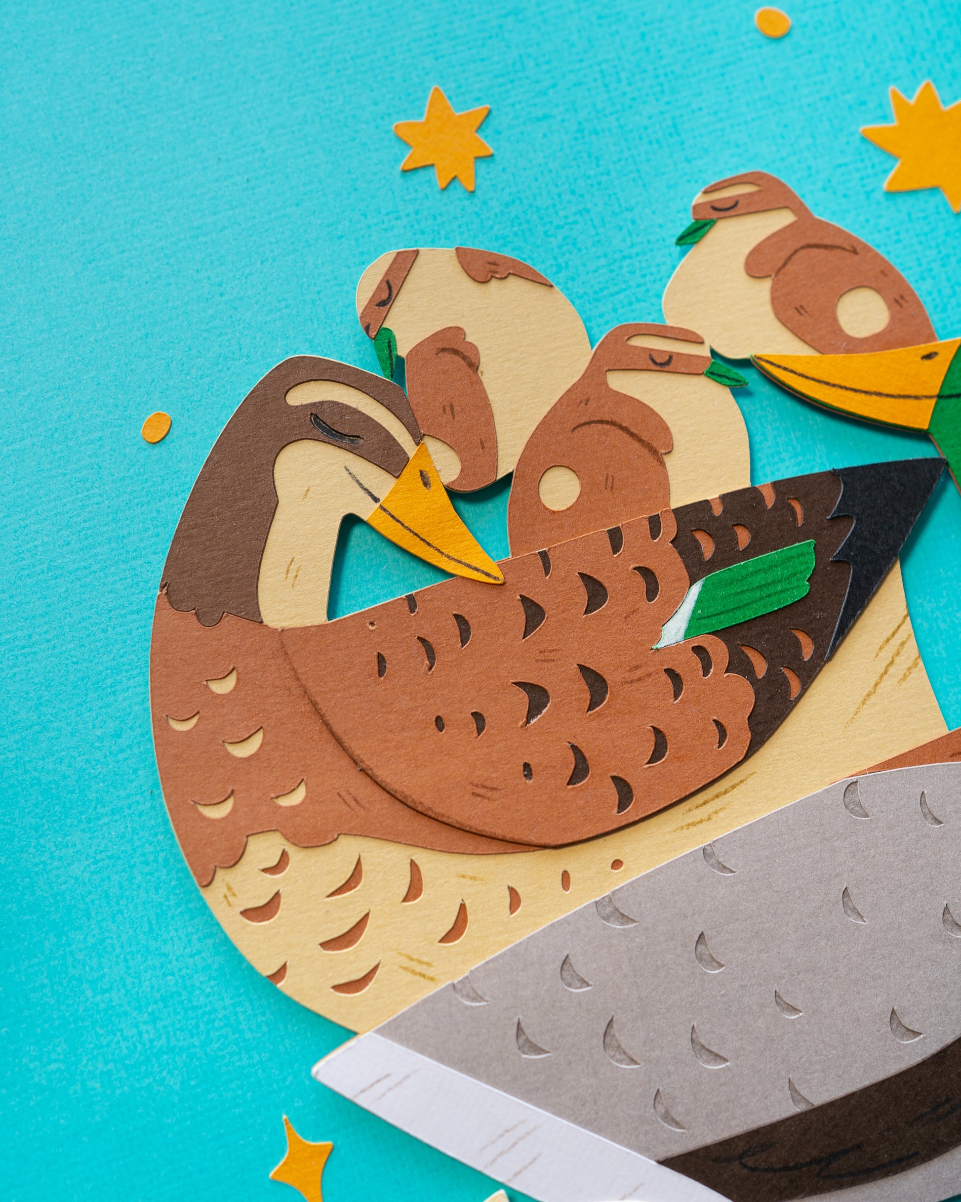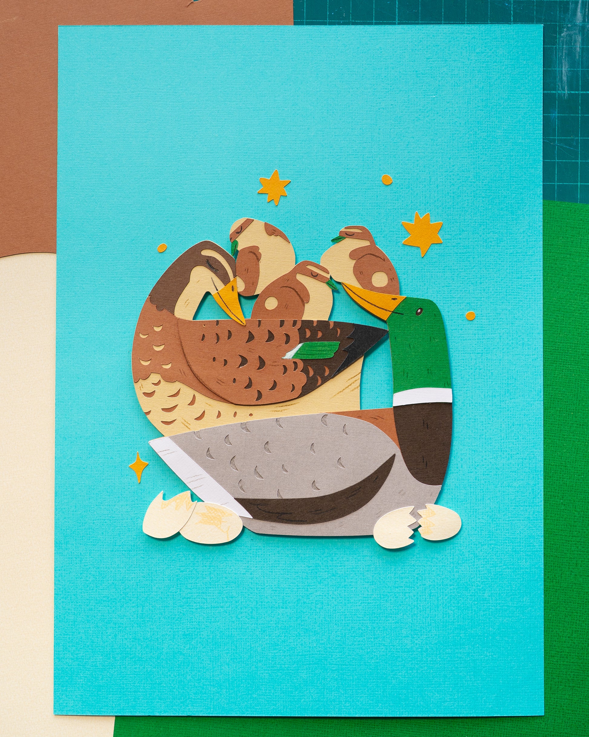 Made with archival 216gsm cardstock, 300gsm Arches cold pressed watercolour paper, gouache, and coloured pencils.
